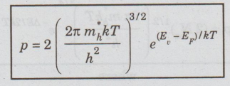 concentration of holes in the valence band is given by