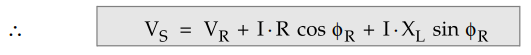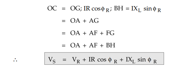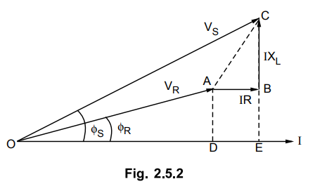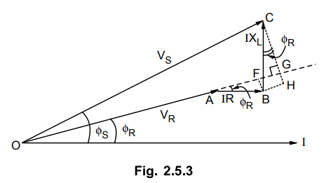 The approximate expression for sending end voltage Vs can be obtained as follows. Draw the perpendicular from B and C on OA produced which is shown in the Fig. 2.5.3.