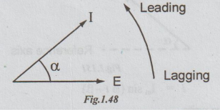 angle of i is a more than that of e. So we, say that current leads the voltage