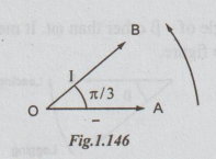 at an angle π/3, in anti-clockwise direction, from voltage OA. OB represents