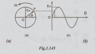 Consider a phasor OP = Em Em is the maximum value of alternating voltage, which varies sinusoidally. Let this phasor rotate in the anti-clockwise direction at a speed of a radians/sec.