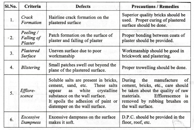 Basic Civil & Mechanical Engineering: UNIT III: i. Plastering : Tag: : Purposes, Requirements or Qualities, Types of Mortars, Different Stages, Defects and Precautions - Plastering