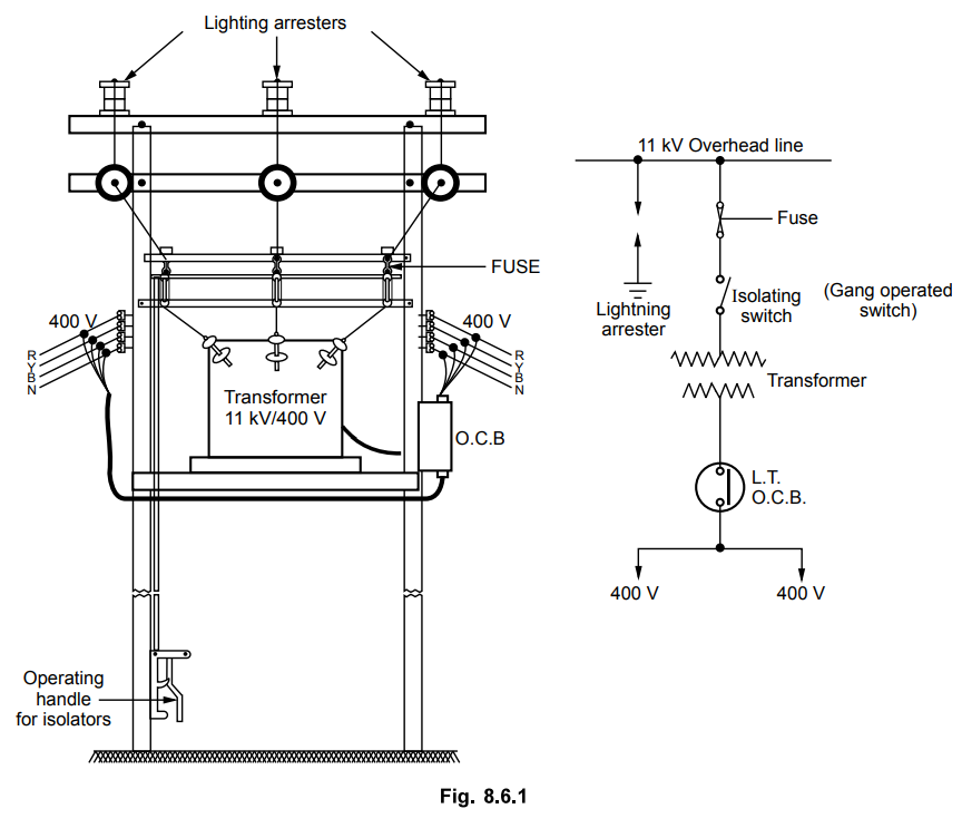 The layout and schematic of pole mounted substation is shown in Fig. 8.6.1.