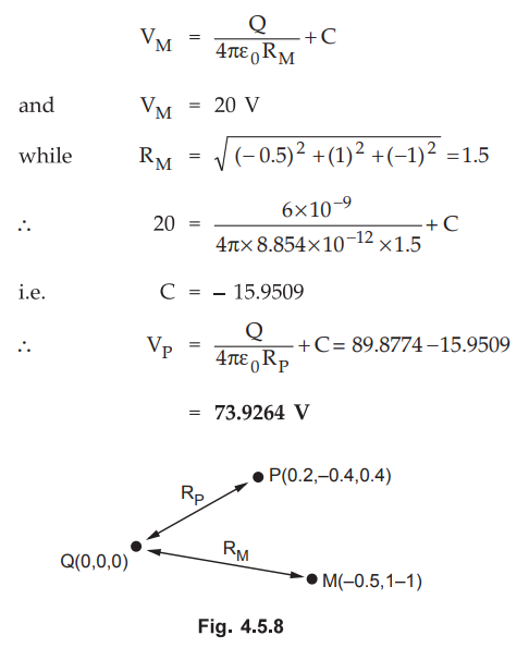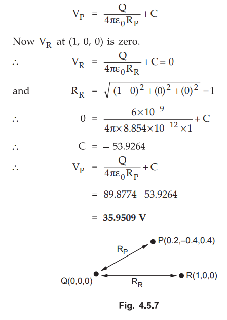 Ex. 4.5.8 If same charge Q = 0.4 nC in above example is located at (2, 3, 3) then obtain the absolute potential of point A (2, 2, 3).