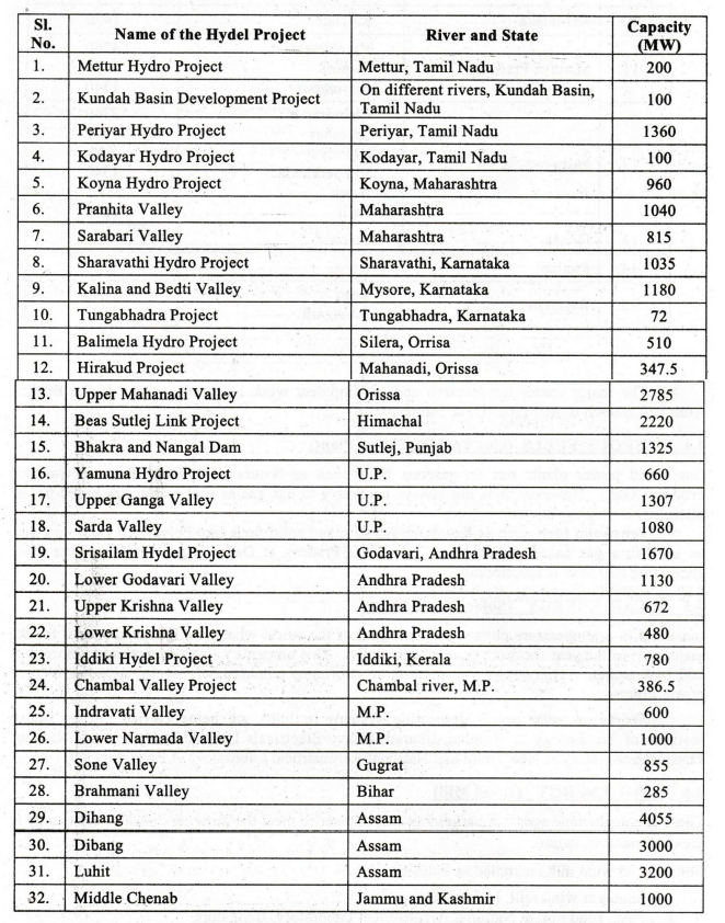 hydel potential in the country. Some of the major hydroelectric power plants in