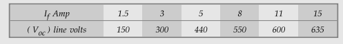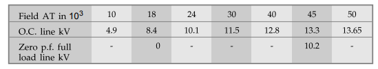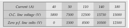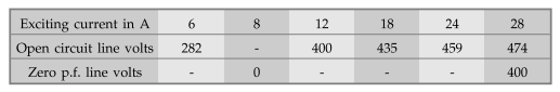 full load zero p.f. saturation characteristics data for 40 kVA, 400 V, 3 phase,