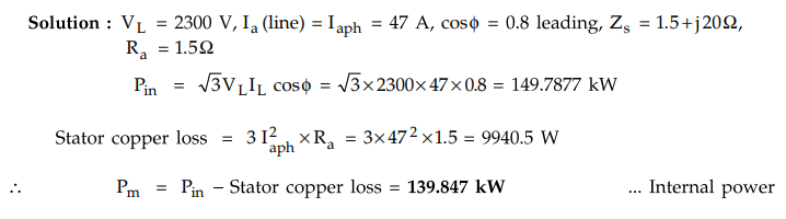 Pin = 3 (per phase power) = 3 × Vph Iaph cos ϕ