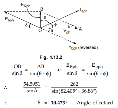 find angle of retard δ , apply sine rule to ∆ OBA