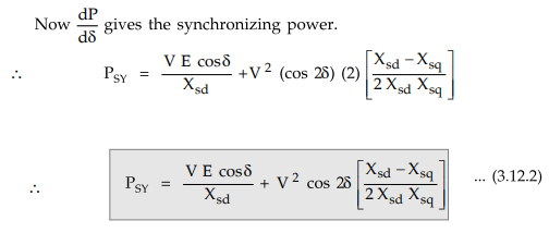 Key Point : Thus in case o/ salient pole machines the expression for synchronizing power contains one more additional term
