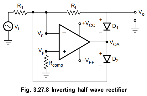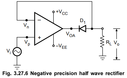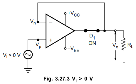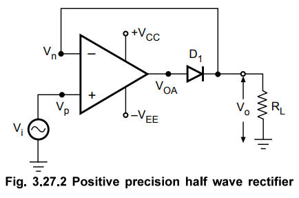 Fig. 3.27.2 shows the positive small signal precision half wave rectifier.