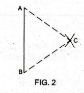 this method, the linear measurements AC and BC alone are measured. Distance AB