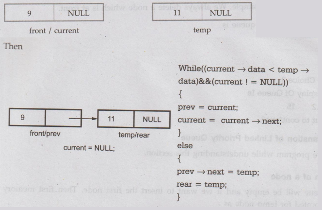 value '7' in the linked queue then we will find the position for temp node in linked queue.