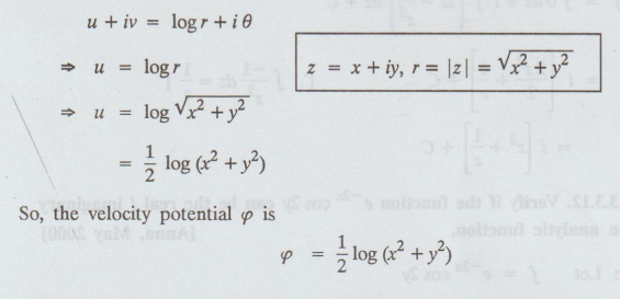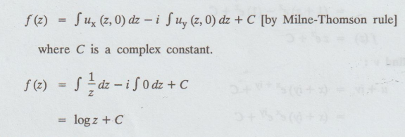 Example 3.3.7. Show that the function u = ½ log (x2 + y2) is harmonic and determine its conjugate. Also find f (z). [A.U A/M 2008, A.U A/M 2017 R8]