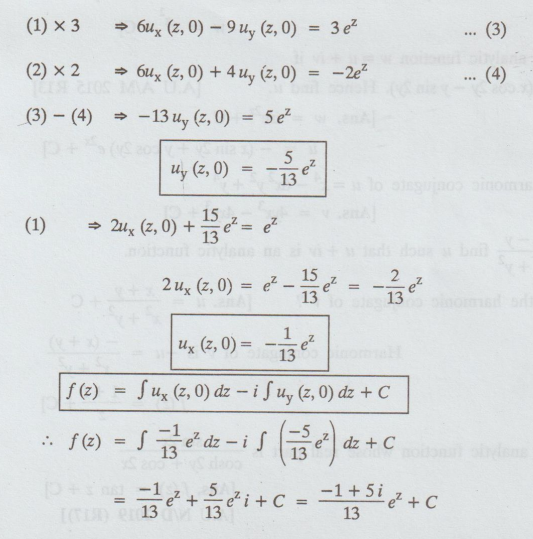 Example 3.3.16. If f(z) = u+iv is an analytic function and u-v=ex (cos y sin y), find f (z) interms of z. (OR) Find the analytic function f(z) = u + iv if u – v = ex (cosy - sin y) [A.U Dec. 1997] [A.U A/M 2018 R-17]