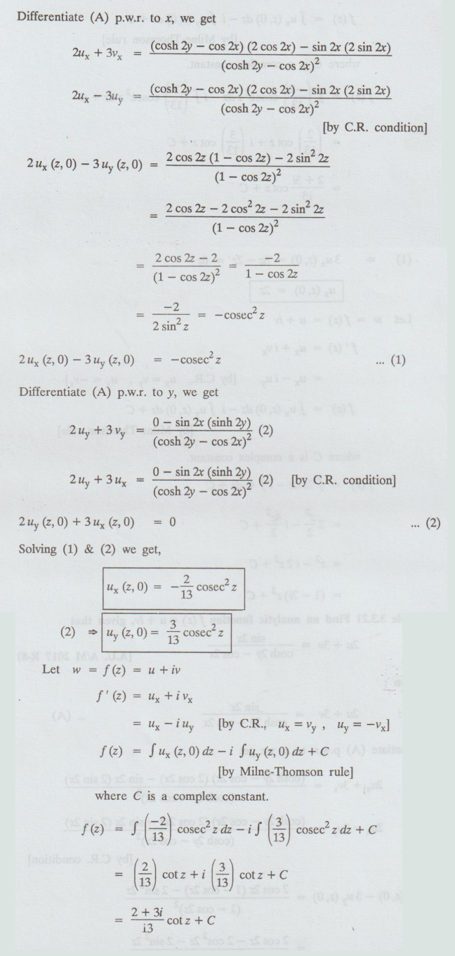 Example 3.3.21 Find an analytic function f(z) = u + iv, given that 2u + 3v = sin 2x / cosh 2y = cos 2x [A.U. A/M 2017 R-8]
