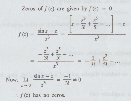4.3.4. Find the zeros of sin z - z / z3