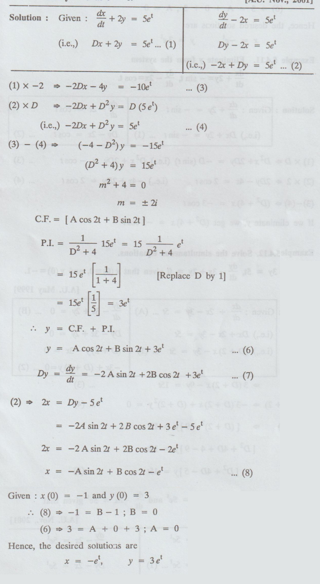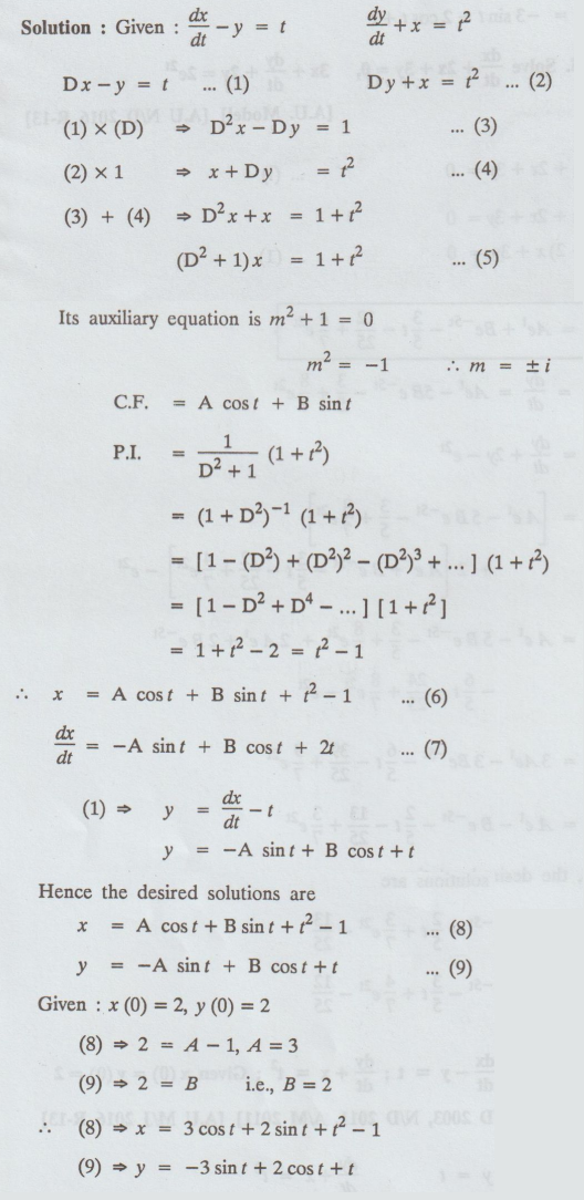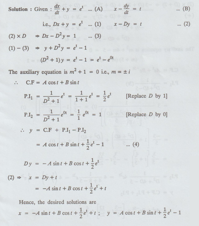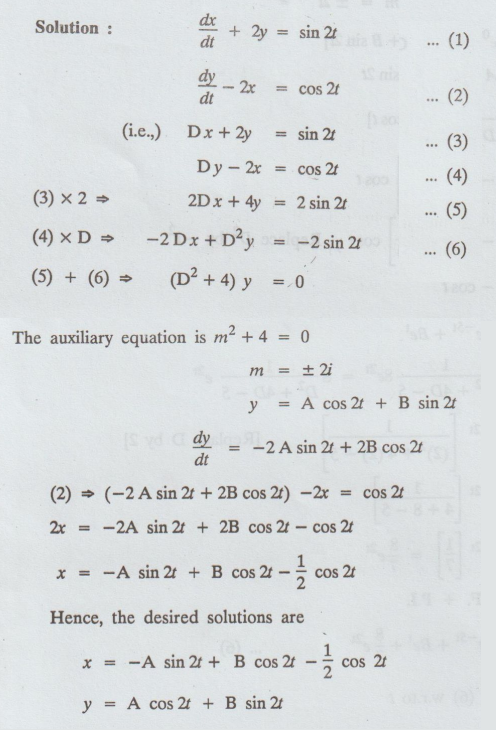 Probability and complex function: Unit V: Ordinary Differential Equations : Tag: : Solved Example Problems - Problems based on system of simultaneous linear differential equations with constant co-efficients