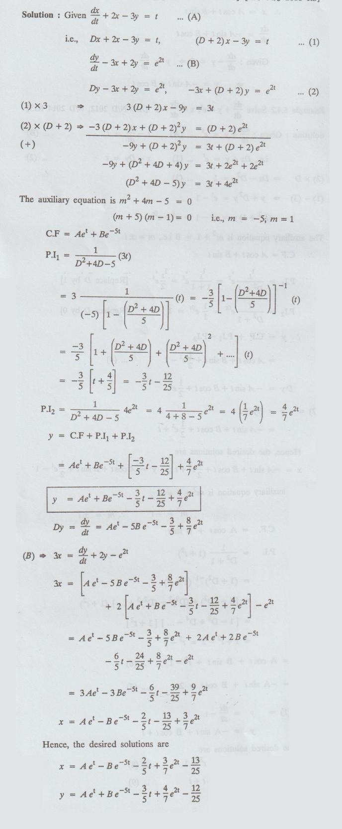 Probability and complex function: Unit V: Differential equations : Problems based on system of simultaneous linear differential equations with constant co-efficients. : Type I, Type II , Type III.