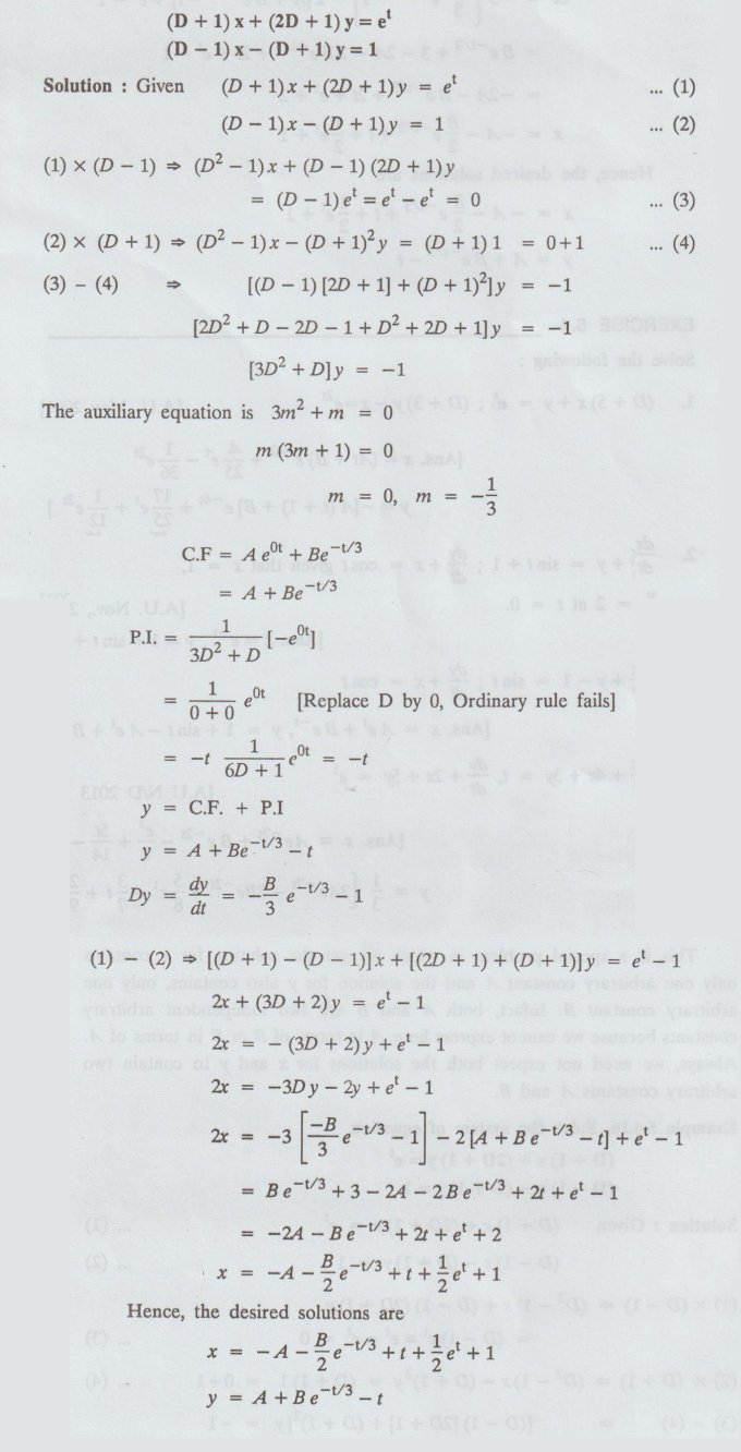 5.4.2 Solve dx / dt + y = et, x – dy / dt = t [A.U N/D 2012, N/D 2014 R13]