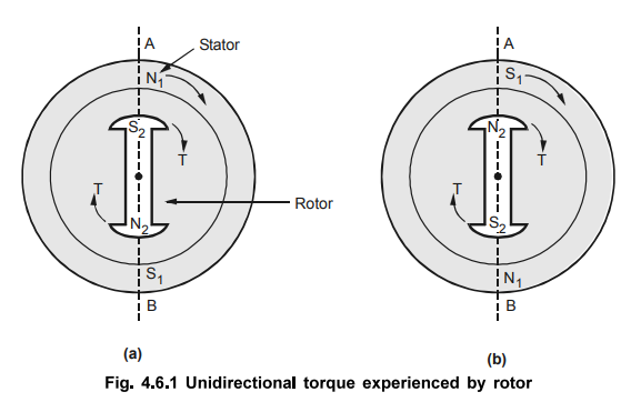 unidirectional torque in the direction of the rotating magnetic field. Hence