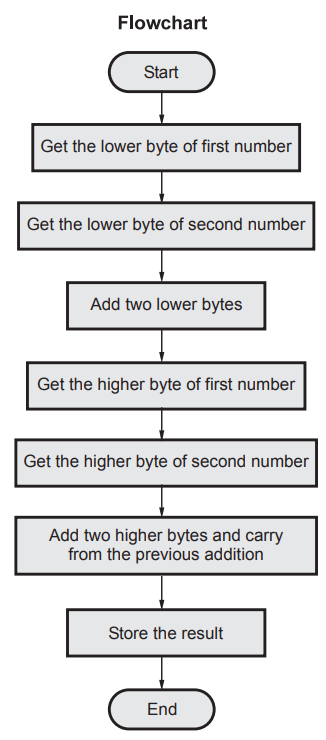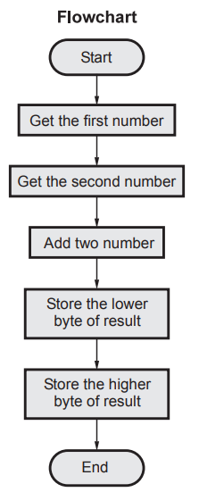 numbers to be added are in memory locations 2001H and 2003H. Store the result