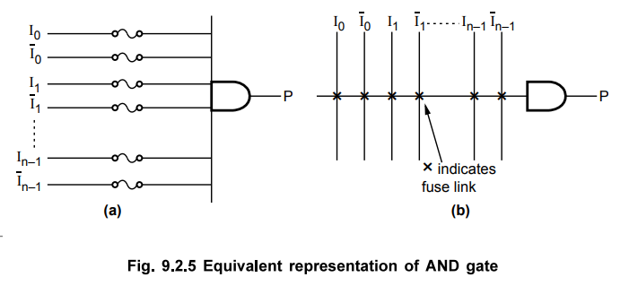 connections for one AND gate. The array logic symbol shown in Fig. 9.2.5 (b)