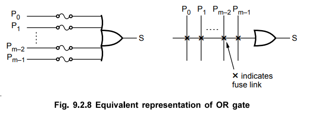 • In practice when we are designing combinational circuits with PROM, it is not necessary to show the internal gate connections of fuses inside the unit, as shown in the Fig. 9.2.13.