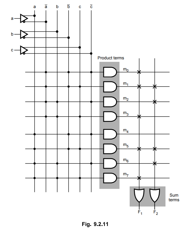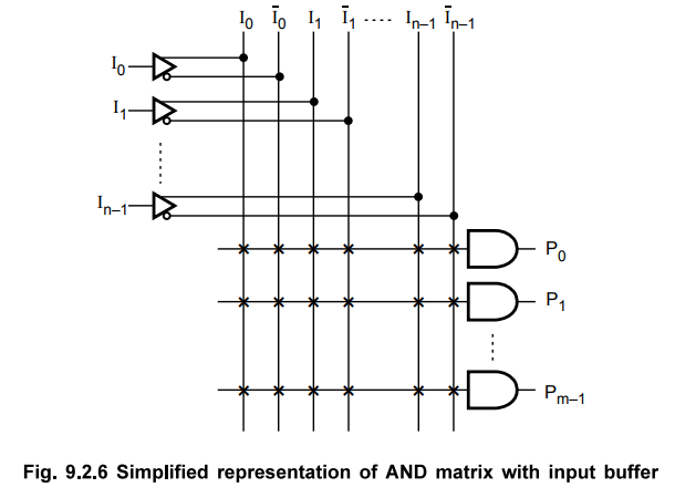 The Fig. 9.2.6 shows the simplified representation of AND matrix with input