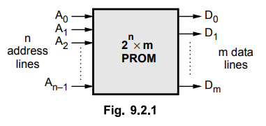 The Fig. 9.2.1 shows the block diagram of PROM. It consists of n-input lines