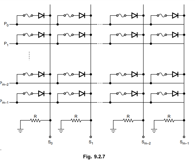 outputs of the AND matrix. The Fig. 9.2.7 shows the OR gates formed by diodes