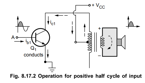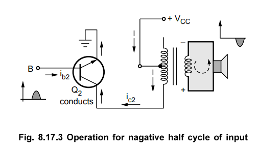 • With respect to the centre tap, for a positive half cycle of input signal, the point A shown on the secondary of the driver transformer will be positive. While the point B will be negative.