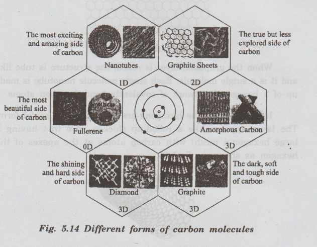 carbon exists in four different crystalline forms namely Diamond, Graphite,