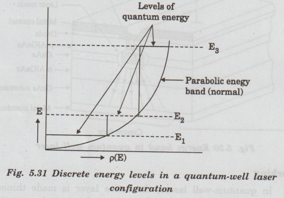 quantum well laser is shown in fig.5.29 The active laser (GaAs) is in between