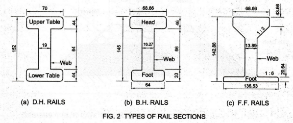 types of rail section are Double headed rails (D.H. rails), Bull headed rails