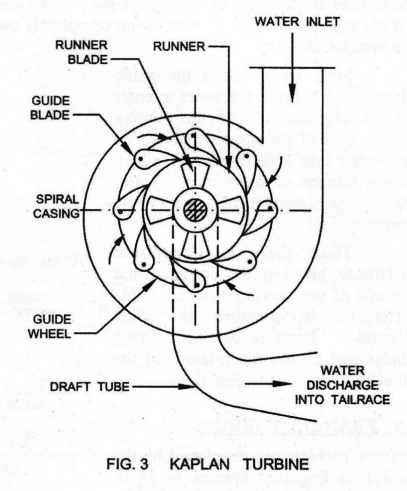 Turbine is a low head reaction turbine, in which water flows axially. It was