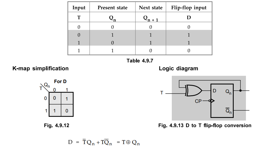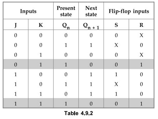 excitation table for above conversion is as shown in the Table 4.9.3.