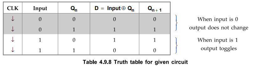 4.9.2 Analyze the circuit and prove that it is equivalent to T flip-flop.