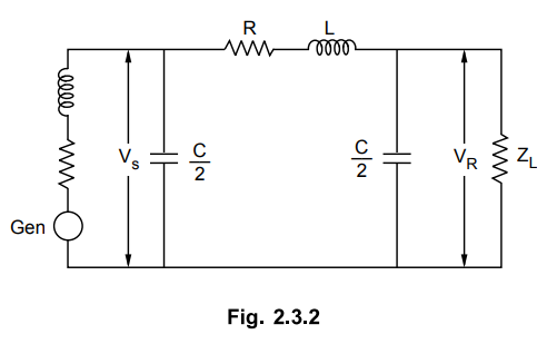 line, R and L are taken as lumped as shown in the Fig. 2.3.2. with half the
