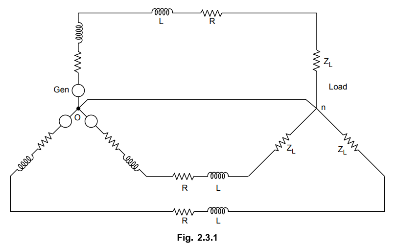 2.3.1 shows a star connected generator supplying a balanced Y connected load