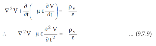 • Now equations (9.7.9) and (9.7.10) are very much symmetrical obtained from equations (9.7.5) and (9.7.7) by applying Lorentz condition for potentials. These are called wave equations.