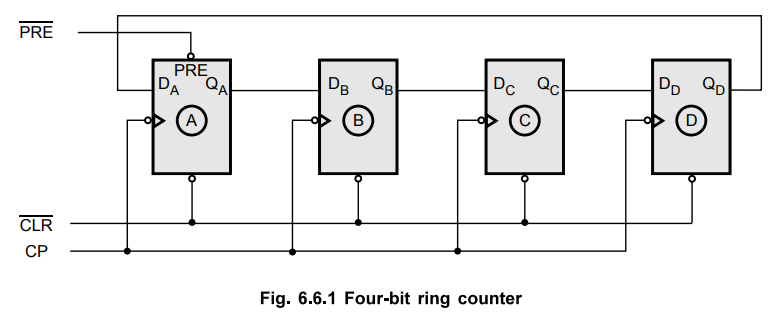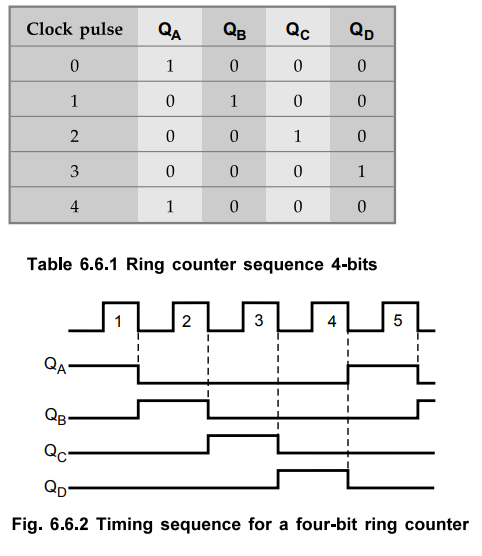 Fig. 6.6.1 gives the timing sequence for a four-bit ring counter.