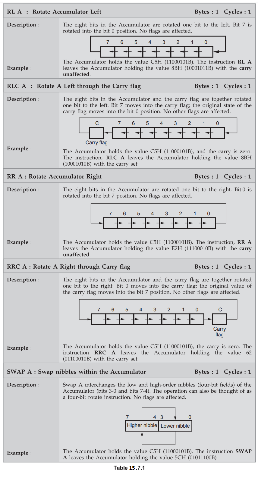 Table 15.7.1 gives the list of rotate and swap operations supported by 8051.