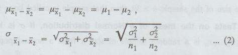 for example, S1 and S2 are the sample means from two populations, denoted by respectively, then the sampling distribution of the differences of means is