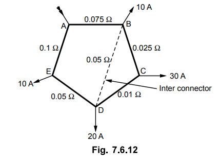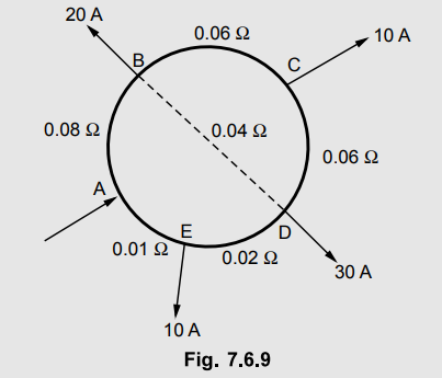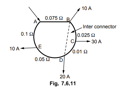 Fig. 7.6.9 shows a ring distributor with interconnector BD. The supply is fed