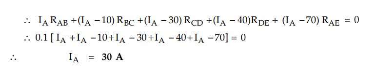 are 0.1 ohm. The main supplies the loads of 10A at B, 20A at C, 10A at D, 30A