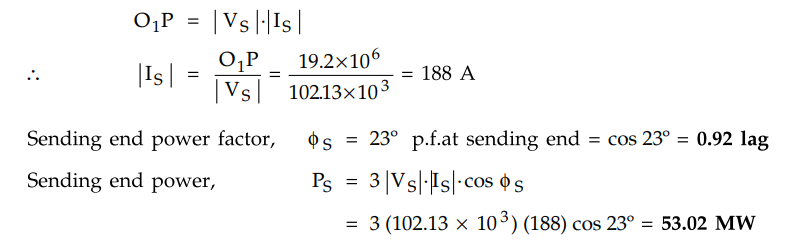 With the help of circle diagram at sending end we can get PS,QS and power factor on complex plane.