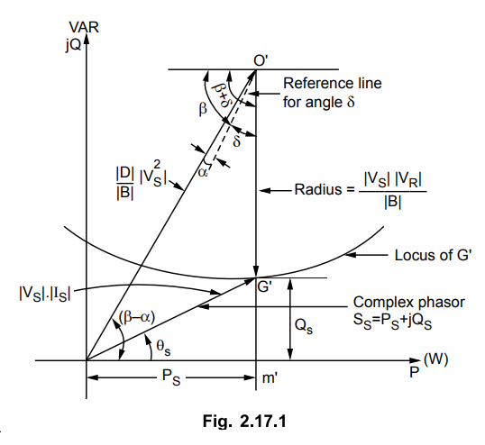 required to draw sending end power circles for various values of |VS| then centre O' of sending end