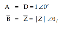 B = 100 ∠ 70°Ω, C = 0.0006 ∠ 88°.