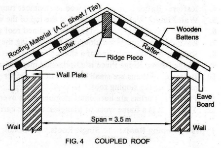 a Coupled Roof, a Pair or Couple of Rafters slope upwards from the Walls. The