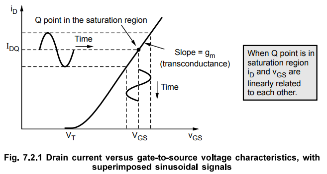 • The time-varying signal source in Fig. 7.1.1 (a) generates a time-varying component of the gate-to-source voltage.